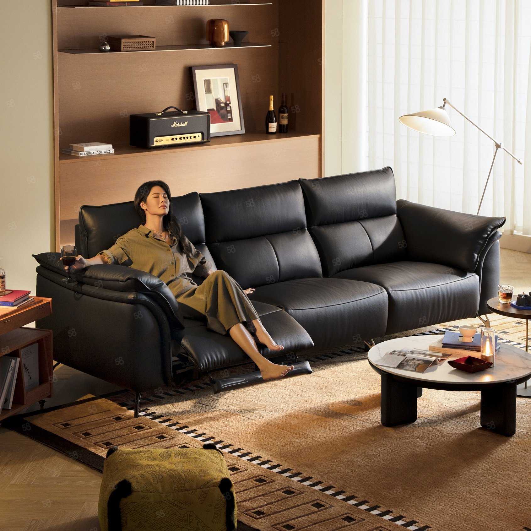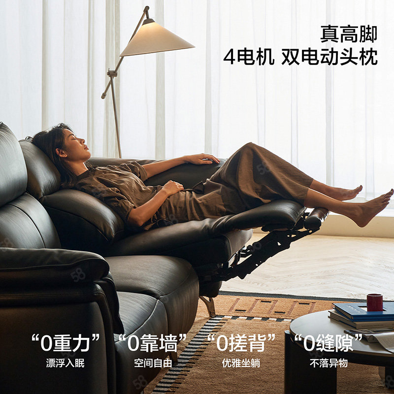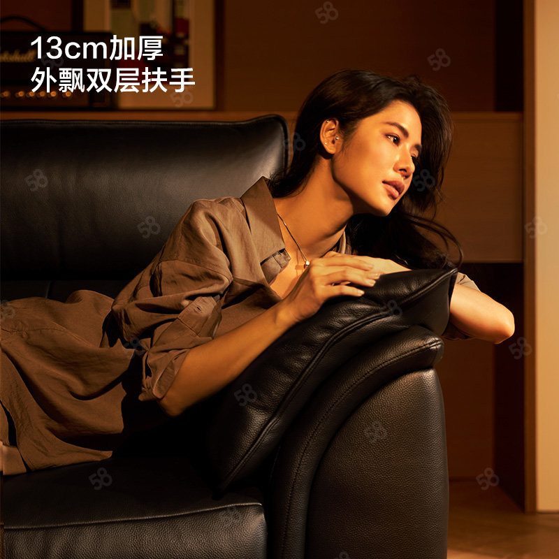 林氏家居真皮电动功能沙发客厅复古风头层牛皮高级感G808